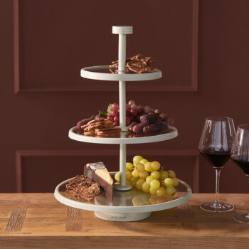 De Etagère Belfaux is een stijlvolle manier om snacks of decoraties te presenteren. Het gouden frame in combinatie met de glazen plateaus creëert een verfijnde uitstraling die perfect past in zowel een klassiek als modern interieur. Voeg een luxe touch toe aan je tafel of dressoir met deze elegante etagère.