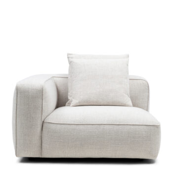 De chaise longue module voor de Hamilton modulaire bank biedt ultiem comfort en sluit naadloos aan de rechterzijde aan. Bekleed met een luxueuze, gemêleerde stof in Antique White, geeft deze module je zithoek een verfijnde en elegante uitstraling. Perfect voor ontspannen momenten en het creëren van een stijlvolle, comfortabele sfeer in je woonkamer.