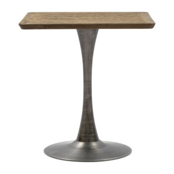 Deze vierkante bistrotafel combineert moderne en klassieke elementen tot een elegant geheel. Het houten blad met een vissengraadmotief voegt een eigentijdse flair toe, terwijl de witte poot een landelijke charme brengt. Ideaal voor het creëren van een stijlvolle en evenwichtige uitstraling in je interieur.