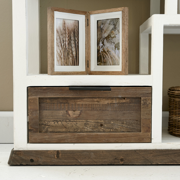 De Metropolitan Dresser combineert een klassieke kleurstelling van wit en naturel hout met een moderne, luchtige vormgeving. Vervaardigd uit een verfijnde mix van populierenhout en gerecycled iepenhout, straalt dit meubel karakter, vakmanschap én duurzaamheid uit.