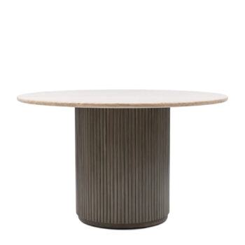 Deze ronde salontafel brengt niet alleen stijl en elegantie naar je woonkamer, maar is ook een ware blikvanger door het unieke ontwerp. Het prachtige travertijnen blad zorgt voor een chique en tijdloze uitstraling. Travertijn, een natuursteen, staat bekend om zijn natuurlijke kleurnuances, waardoor elke tafel uniek is. Of je nu een modern, industrieel of klassiek interieur hebt, deze tafel past moeiteloos in elke setting